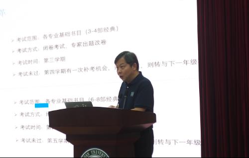 于亭院长在致辞中回顾了色小说 曾经俊彦云集的历史,追溯了前辈学者的优良传统,并鼓励各位新生继续探索和创新。他提出“文学”“文献”“语言”三者间具有相互渗透的关系,同学们在未来的学习生活中要有整全的学科视野。因此,于亭院长首先强调同学们要多读书、读好书,提醒同学们研究生阶段的学术阅读和本科阅读有很大区别。其次,他也希望同学们能够重视写作、勇敢写作,加强学术训练,把自己读书的心得体会记录、整合。最后,于亭院长以顾炎武和马克斯·韦伯的例子引导同学们思考自己的人生选择和规划。研究生面临的是对职业生涯的学业教育,在如今的时代,他希望同学们面对自己的选择时,能够成为一个担当起责任、最后面对所有结果也能说出自己再无旁顾的人。