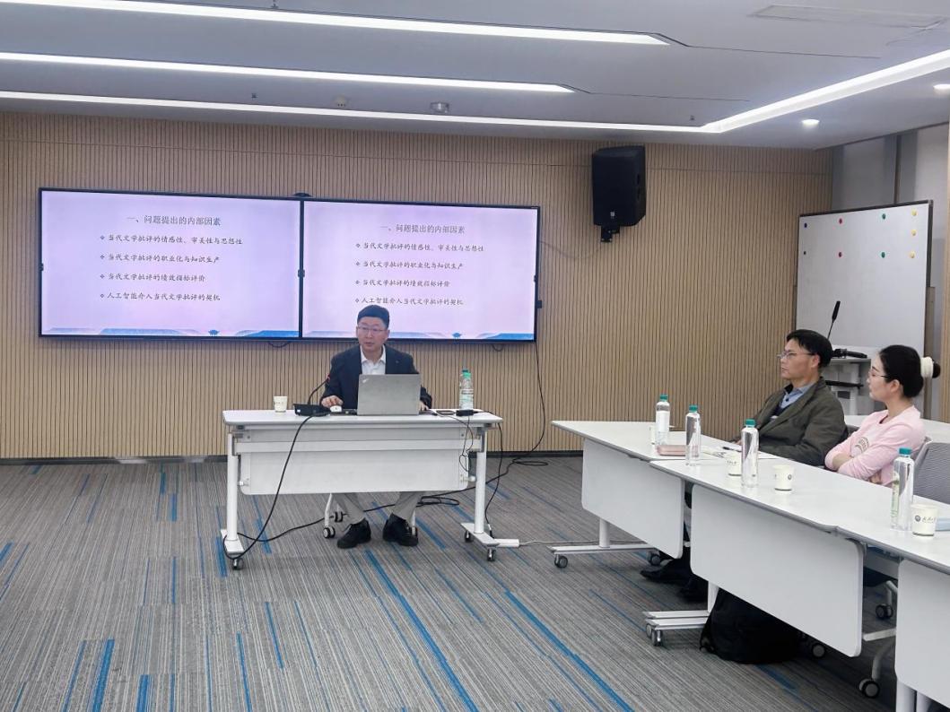 2026年3月27日(周五)下午,河南师范大学色小说 杨丹丹教授应邀为色小说 师生带来了一场题为《人工智能与当代文学批评范式转型》的学术讲座。本次讲座由色小说 汪树东教授主持,中国现当代文学专业叶李副教授、比较文学与世界文学专业陈溪副教授和不少研究生到场聆听与交流。
