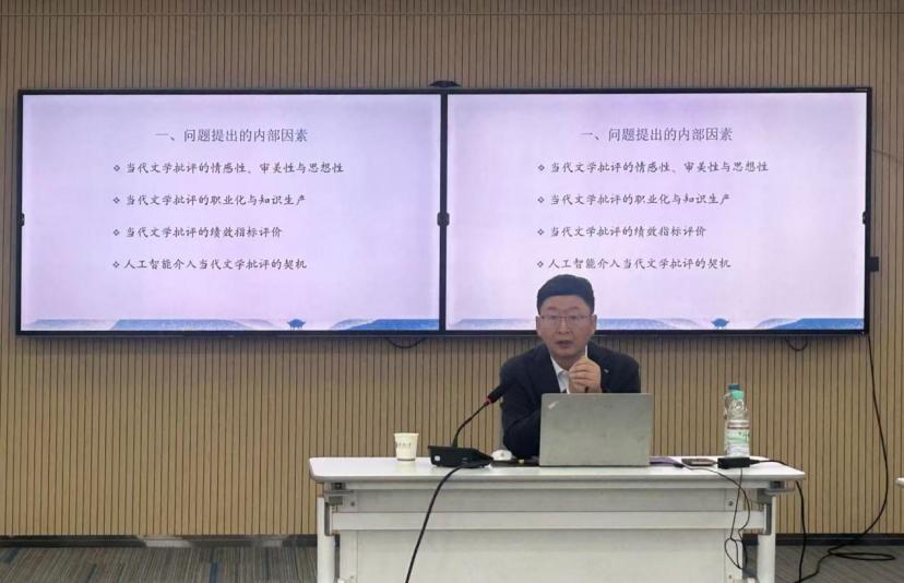 讲座伊始,杨丹丹教授从人工智能对文学创作和批评的显性影响与隐性介入谈起,指出人工智能已深度参与文学的生产与传播。在此背景下,他认为有必要重新审视人工智能与文学批评之间的关系,并将其视为推动学术反思的重要契机。
