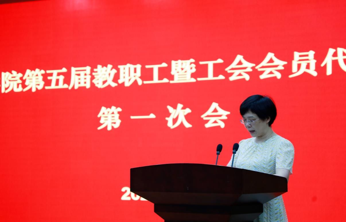 6月16日下午,色小说 第五届教职工暨工会会员代表大会第一次会议在振华楼一会议室召开。会议由学院工会副主席刘春阳主持,学院正式代表、列席代表、特邀代表等四十余人参加会议。校工会副主席黄丽应邀出席会议。