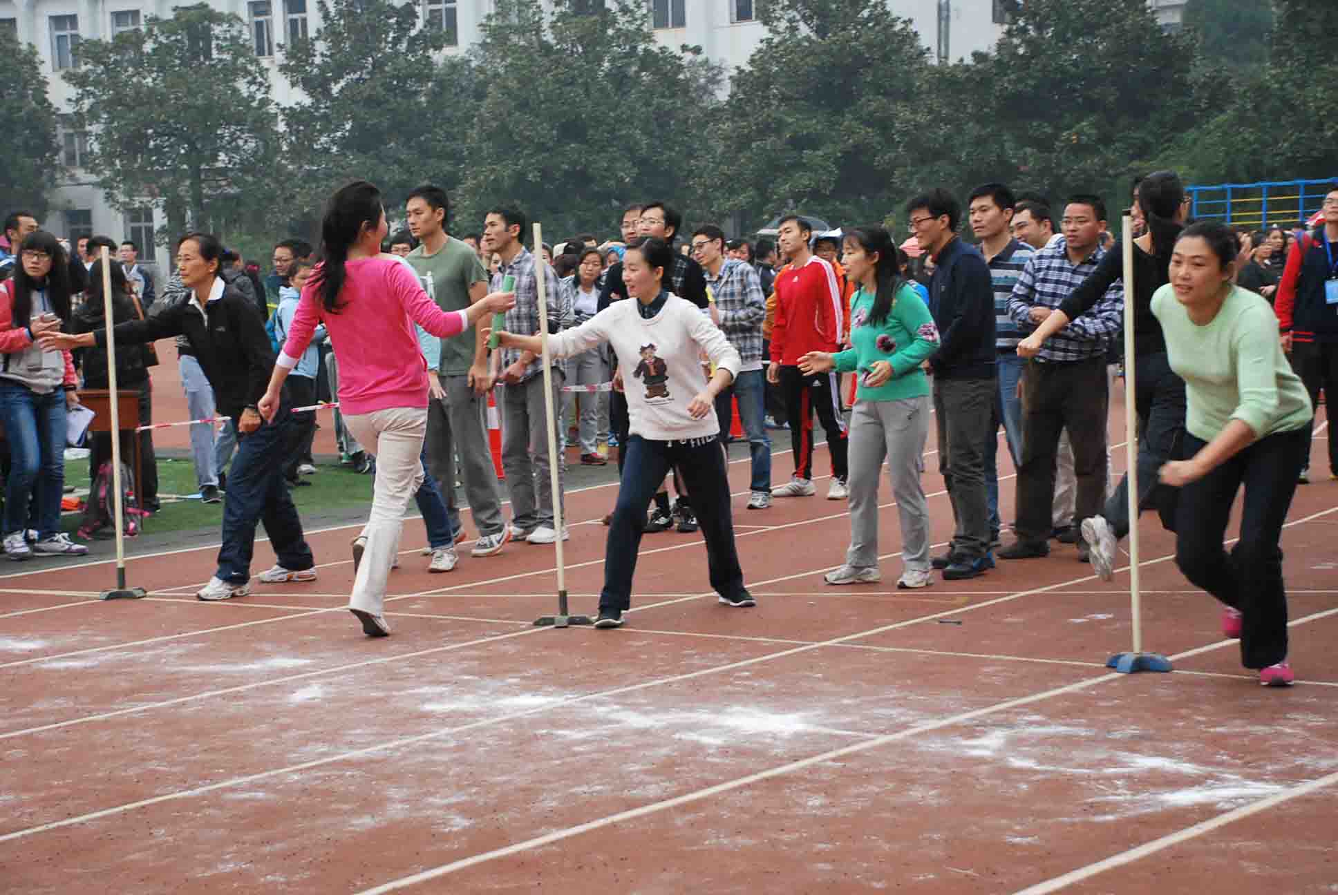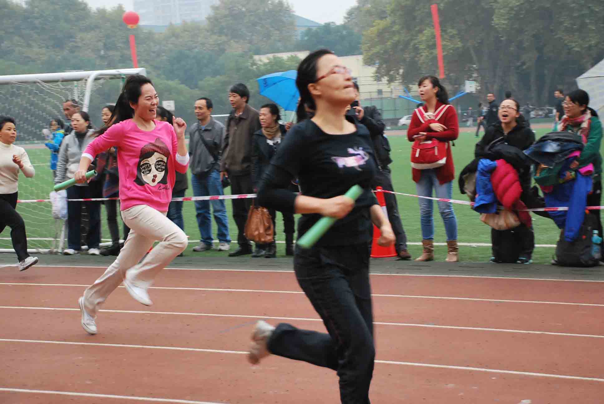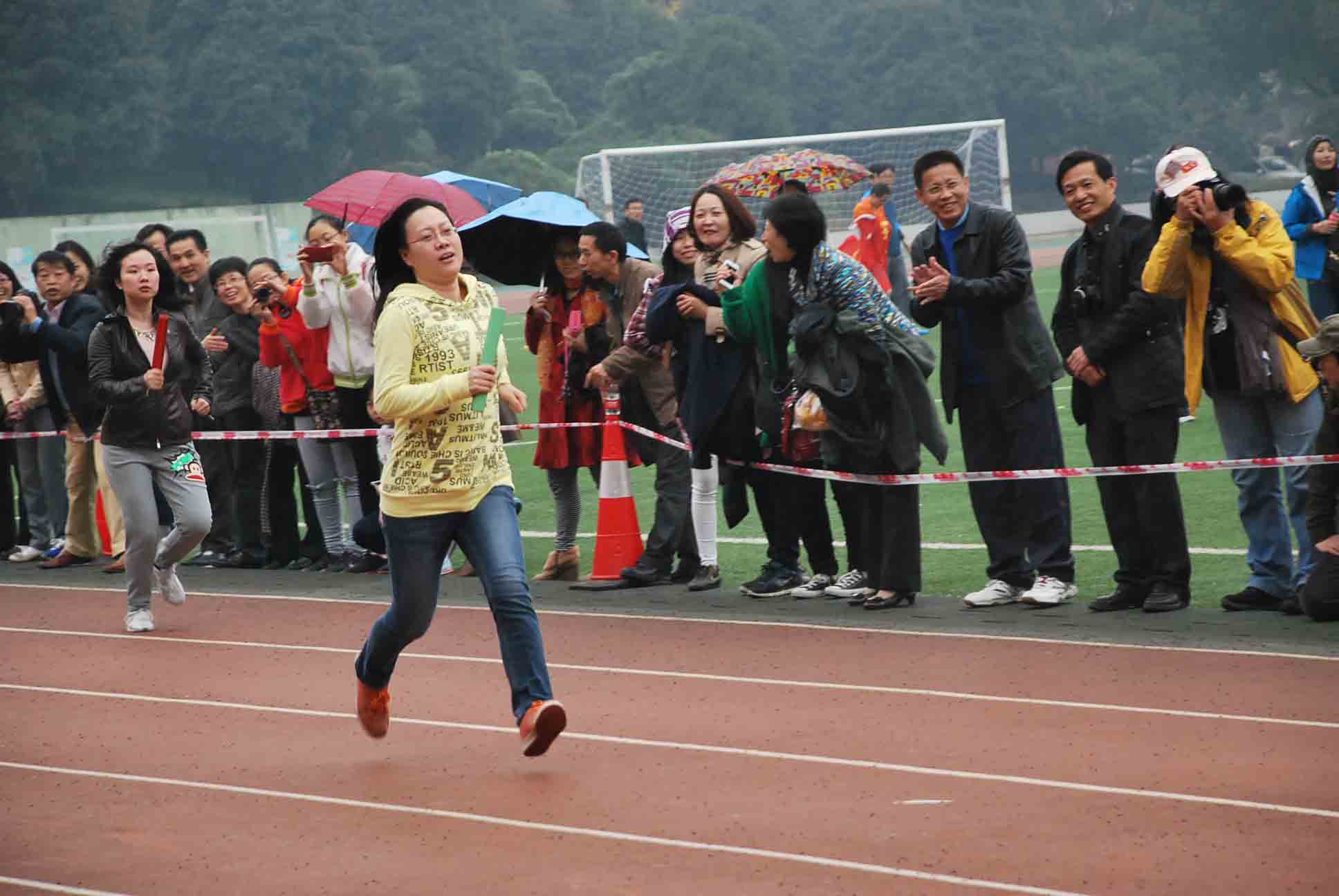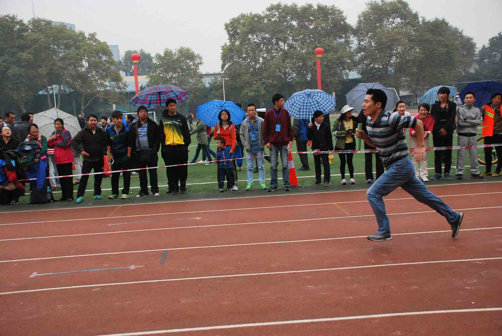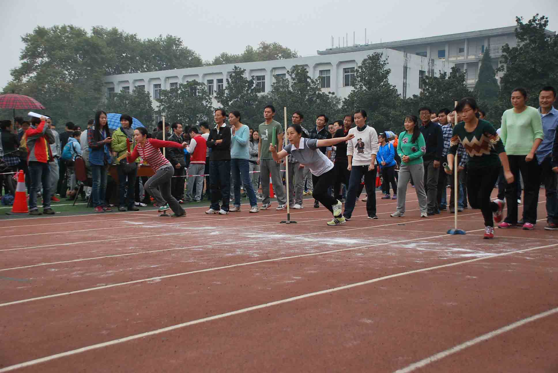 在竞争最为紧张激烈的20人×60M穿梭接力中,天公不作美,下起了中雨,但参赛的各位老师不受环境干扰,团结一致,努力拼搏,最终获得全校第十二名。