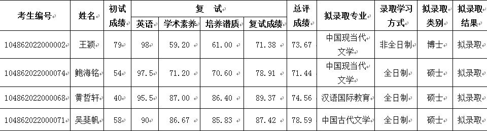 色小说 2022年港澳台硕士研究生复试工作已圆满结束。经色小说 研究生招生工作领导小组认真讨论并集体通过,拟录取王颖等四位考生。现将复试拟录取结果予以公示。