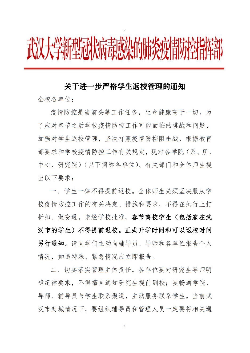 关于进一步严格学生返校管理的通知