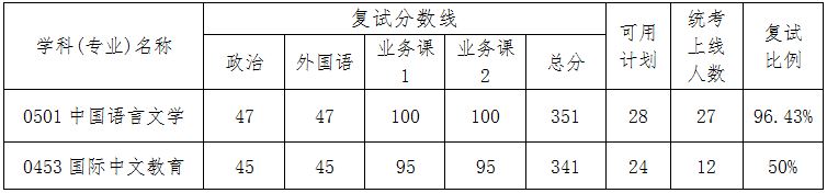 学术学位研究生与专业学位研究生分类划线,专项计划复试分数线由学校统一划定。招生计划及复试分数线详见下表: