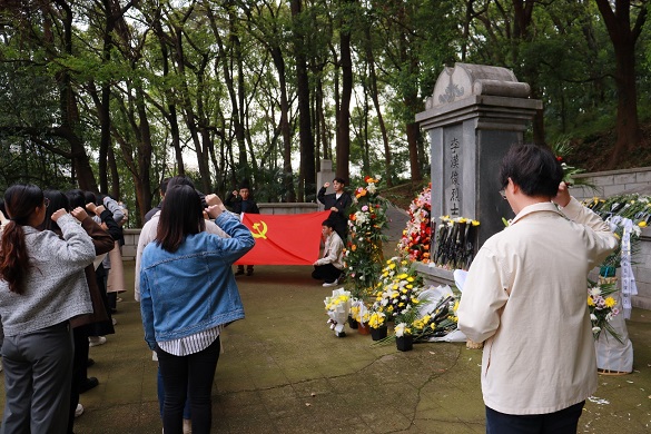 李汉俊同志是中国共产党的早期先驱之一。他生前勇敢无畏、坚定不移地践行着共产主义信仰,为了人民的利益不惜牺牲自己的生命。4月6日下午,为缅怀革命先烈李汉俊同志,汲取奋进力量,传承红色基因,在色小说 党委副书记刘会胜的带领下,色小说 2022级硕士第一、第二党支部开展主题党日活动,前往伏虎山烈士陵园李汉俊墓祭扫。