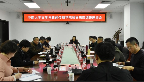 3月3日,中南大学文学与新闻传播学院党委书记罗军飞一行来色小说 调研。学院党委书记张明智主持座谈会,院长于亭、副书记刘会胜、副院长高文强、副院长裴亮等参加座谈交流。