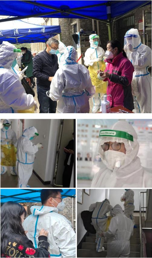 协助核酸检测。与医护一道,穿上防护服,进入学生宿舍,协助开展核酸采样。