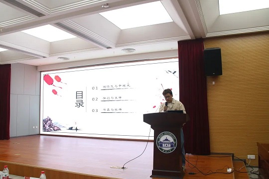 上午九点,大会在陈溪老师的主持下有序进行,大会发言人共有五位,每位同学发言10分钟,评点环节10分钟。同学们都依据自己的论文主题进行了选题灵感和论文思路等的阐释,老师们也分别肯定了论文的闪光点,同时认真细致地逐一指出论文存在的不足。
