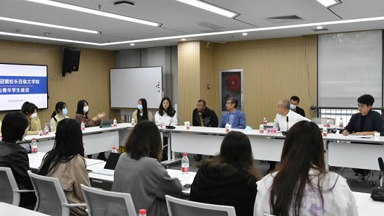 2022年10月28日上午,校长窦贤康院士莅临振华楼,与色小说 青年学子亲切交谈。24位研究生参加座谈。校人事部部长付磊、色小说 党委书记张明智、院长于亭、党委副书记刘会胜等与会。