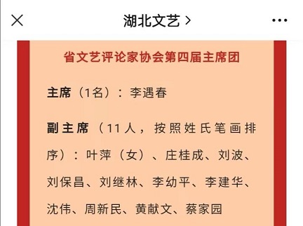 2022年7月15日至16日,湖北省六家文艺家协会在汉召开代表大会,色小说 五位教师参与湖北省文艺评论家协会第四次代表大会,其中李遇春教授当选湖北省文艺评论家协会第四届主席,叶立文教授、叶李副教授、裴亮副教授、朴婕副教授担任省评协第四届理事会理事。
