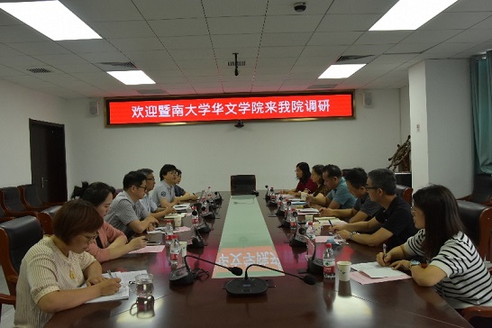 7月4日上午,暨南大学华色小说 党委书记邱向欢、应用语言学系主任李计伟、党总支书记陈争等一行6人来色小说 调研汉语国际教育本科专业建设情况,色小说 院长于亭、副院长裴亮、学科建设办公室副主任李丽平、对外汉语教研室张延成、田源、欧阳晓芳参与了座谈。