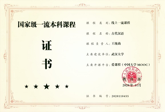 2)开展混合式教学探索,成绩斐然。建设在线开放课程“古代汉语”慕课,使学生在教师的引导下自主学习、激活潜力,学生学习达到了良好的预期效果。截至2022年4月,所建慕课已在各类平台点播超50万人次。课程本身先后获中国最美慕课二等奖、全国高校混合式教学设计创新大赛一等奖、湖北高校首批省级本科精品在线开放课程、2019年色小说 教学成果奖一等奖等荣誉,并于2020年被教育部认定为首批国家级一流本科课程,2021年被“学习强国”收录,2022年被“国家高等教育智慧教育平台”收录,成为在全国颇有影响的专业课程。