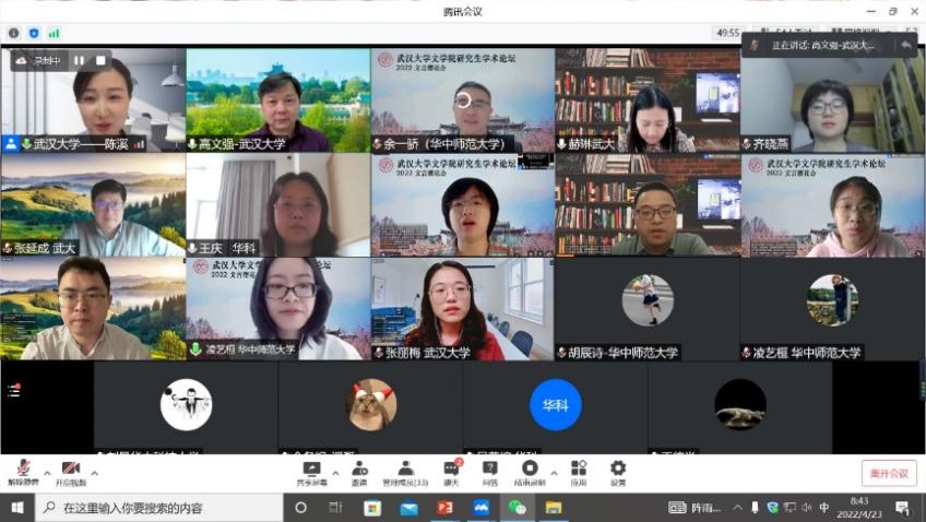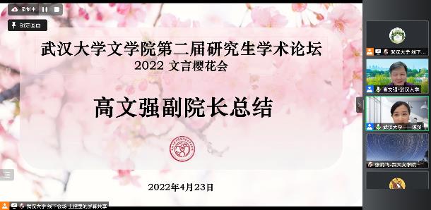 “2022文言樱花会”暨色小说 第二届研究生学术论坛于4月23日在线上成功举办。本次论坛还邀请了华中科技大学人色小说 和华中师范大学色小说 的专家学者及硕博士研究生共同参会,三校共有18位硕博士研究生参与学术发言,在线收看人数达120人次。