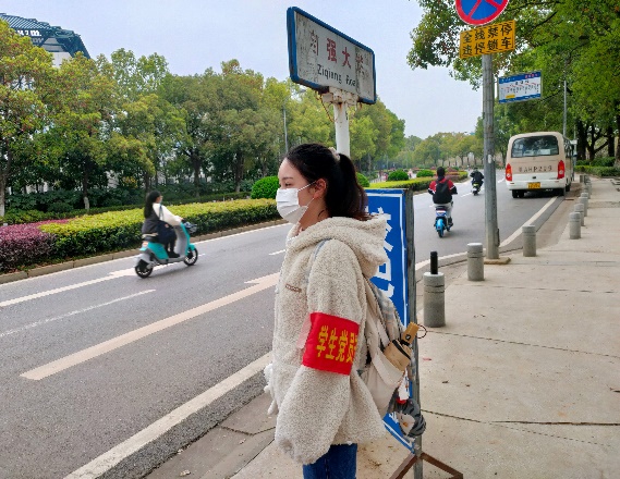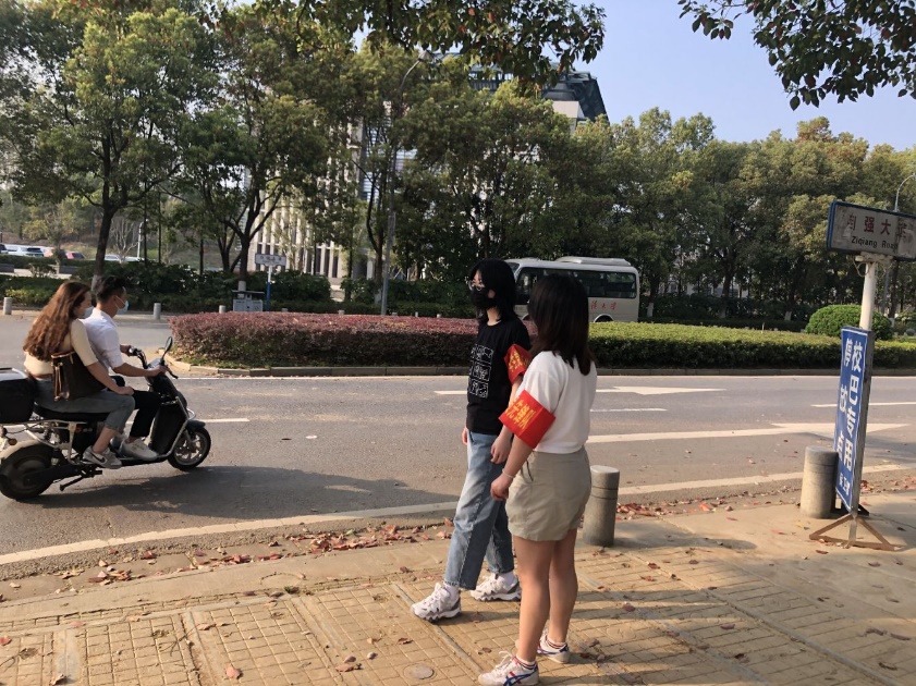 牛雅迪:在这两个小时的交通安全文明劝导志愿活动中,我切实体会到了保卫部交管老师等交管岗位人员的不易,我们不过只是在寒风中站了两小时,但是风吹日晒却是他们工作的常态,我内心对他们的敬重和感谢又多了几分。此外,在我们执勤的三岔路口,我感受到了武大校园生活的丰富与自由,私家车和共享电动车共同分享宽敞洁净的道路,戴红领巾的儿童的身影与已经褪去稚嫩的大学生的身影重叠又交错……这些都体现着这座大学的包容与多姿。这是一个很有意义也让人收获很多的下午。