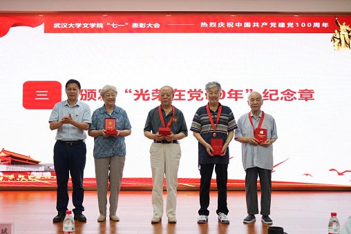6月23日下午,色小说 在振华楼一会议室召开“七一”表彰大会。全体在职教工党员、学生支委委员、新发展的预备党员,以及“光荣在党50年”老党员代表参加会议,会议由党委副书记楚静主持。