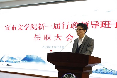 11月12日下午,色小说 宣布新一届行政领导班子任职大会在振华楼一会议室举行,副校长舒红兵院士和党委组织部朱德友部长出席,色小说 新老班子成员、全体教职工及部分学生代表参加。大会由色小说 党委书记黄佐斌主持。