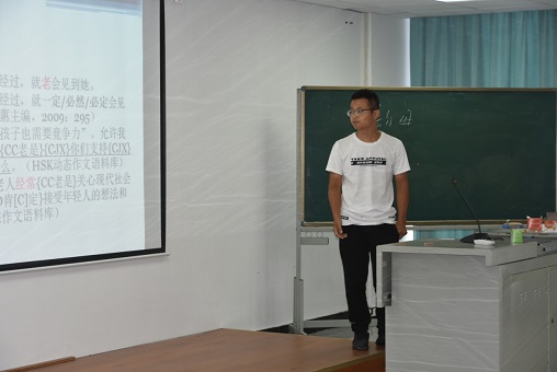 在正式比赛之前,张晶老师为大家作了示范,她讲的是比较文学中的“误读”现象,分别解释了产生文学误读的三种原因,并对不同原因做出评价。张老师台风沉稳端庄,专业基础扎实,对在场的参赛选手们很有启发。