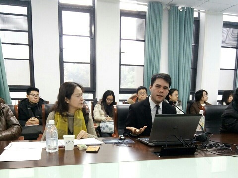 第一期珞珈写作课程工作坊于2018年12月14日上午在色小说 215会议室顺利举办。此期工作坊由色小说 和中国写作学会主办,色小说 汉语写作中心和写作学教研室承办。美国小说家KYLE·MUNTZ主讲“漫长而孤独的道路——小说创作策略”,色小说 萧映教授担任工作坊的主持人兼讲座翻译。参与本期工作坊的有写作学教研室全体教师、中国写作学会副秘书长宋时磊、写作学专业的研究生以及关注创意写作的武大师生。
