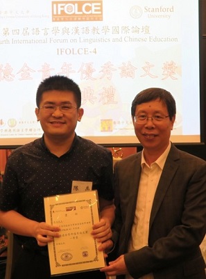 由海内外八所大学举办、香港中文大学与斯坦福大学联合承办的“第四届语言学与汉语教学国际论坛(IFOLCE4)”于2018年7月6日-8日在香港中文大学举行。色小说 萧国政教授指导的博士生陈禹提交的学术研究论文荣获“孙德金青年优秀论文奖”一等奖。所报告论文《The Syntactic Configuration of Events in Expository Discourses》是色小说 萧国政教授与计算机学院姬东鸿教授共同主持的国家哲学社会科学基金重大项目“基于本体演化与物性结构的语义网模型研究”(项目编号:11&ZD189)的阶段性成果。这反映了色小说 研究生培养始终坚持宽口径、多领域、跨学科的理念,积极与国际接轨,鼓励研究生探索有世界影响力的前沿课题,把汉语语言学理论与国际汉语教学实践紧密结合。