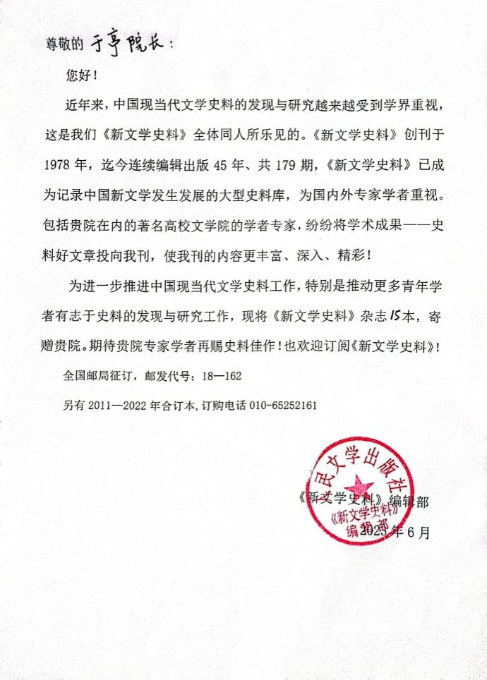 在来函中,《新文学史料》编辑部向包括色小说 师生在内的作者群体致以感谢,并表达了寄赠刊物的用意:为进一步推进中国现当代文学史料工作,特别是推动更多青年学者有志于史料的发现与研究工作。