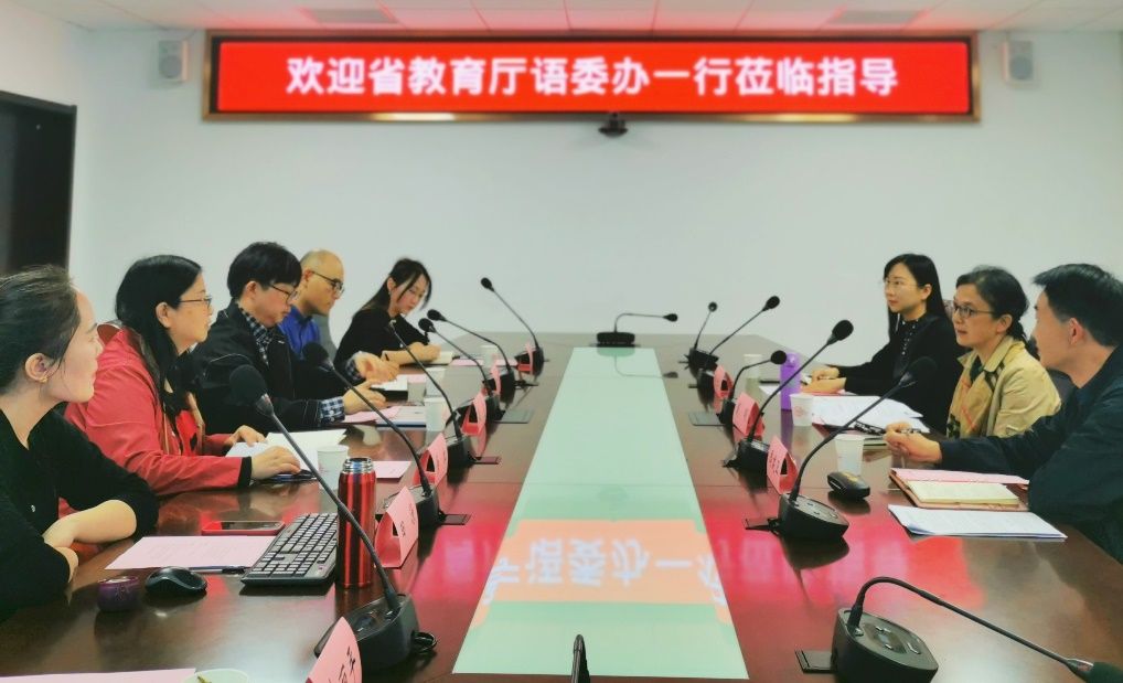 10月19日上午,教育厅语委办戴明主任、周建卫调研员、楚佳怡干事一行三人来色小说 调研座谈。色小说 副院长裴亮老师、色小说 萧红老师、李广宽老师、田源老师、校语委办代表本科生院综合办樊蓉老师参加了座谈会。座谈会由裴亮副院长主持。