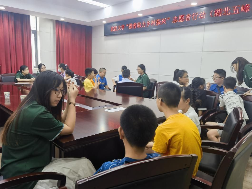 (实践队成员与五峰县中小学学生面对面交流活动现场)