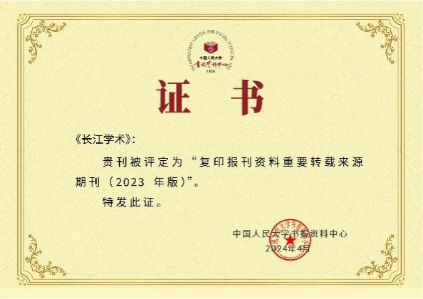 4月25日,《复印报刊资料重要转载来源期刊(2023年版)》正式发布,《长江学术》持续入选,在中国语言文学期刊中转载率排名第7,综合指数排名第10,全文转载量排名第26(详见附表)。