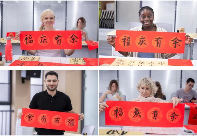 法国学子们的“福庆有余”书法作品