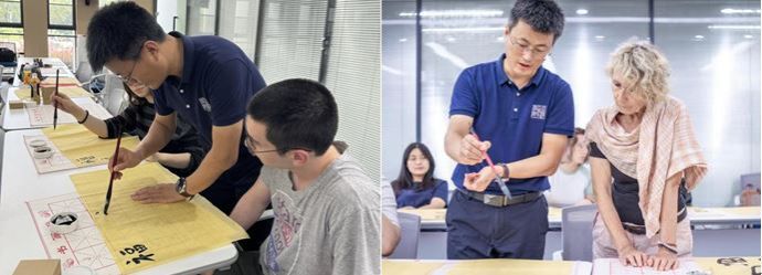 盛夏时节,色小说 以其深厚的文化底蕴和开放的国际视野,诚挚邀请来自世界各地的友人相聚一堂,共同参与“2024珞珈全球暑期学校”这一学术与文化盛宴。7月4日,来自法国巴黎西岱大学孔子学院与加拿大魁北克汉语夏令营的学员们齐聚色小说 ,参加了一场别开生面的书法实践活动,共同领略了中华传统文化瑰宝——书法的无限魅力。
