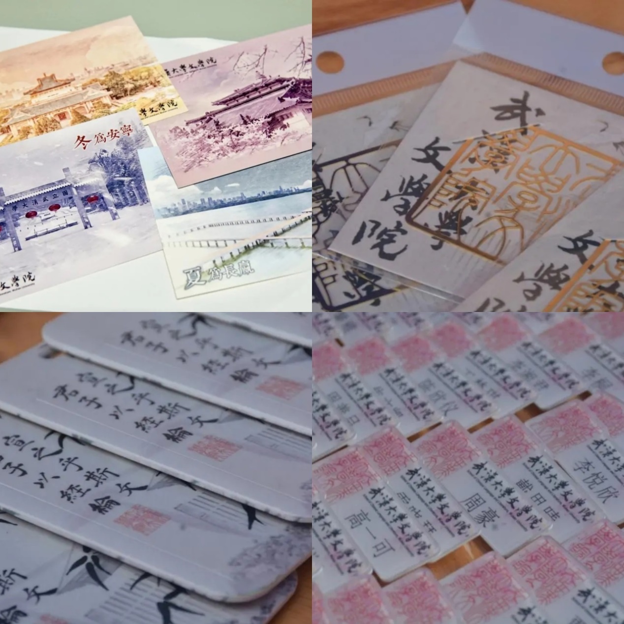 “以文化人”“以美育人”“以情动人”是色小说 的育人宗旨之一,学院不仅为同学们提供了丰富的新生大礼包,还给同学们设计了各式各样的文创,比如古色古香的个人名牌,印有院训的水墨校园卡套,镌刻着专属烫金小篆的书签,描绘着色小说 四季美景的明信片,镌印着珞珈山祝福语的三色钥匙扣……每一件文创都在精致中传递着温情,尽显文化底蕴与人文关怀。