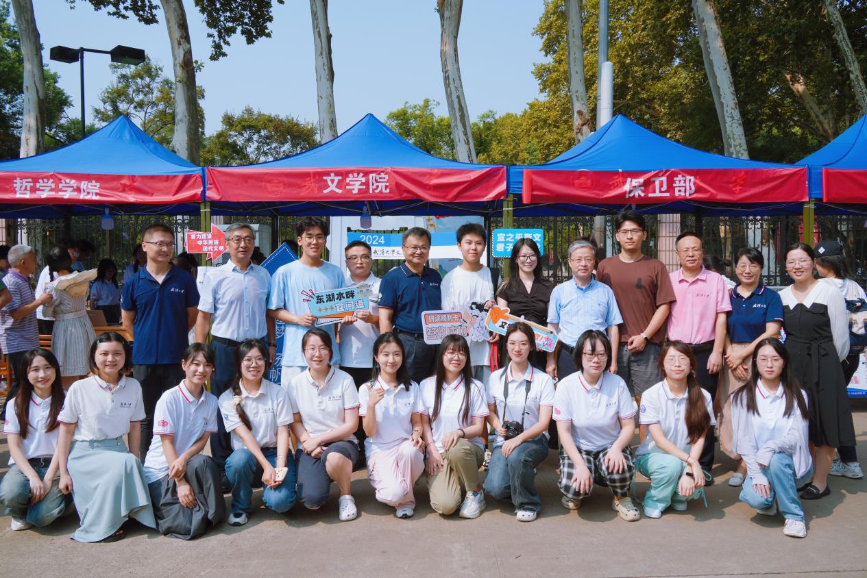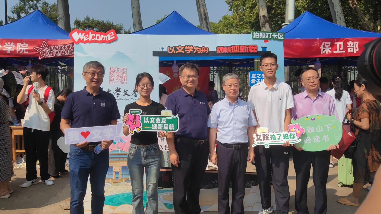 珞珈山下,东湖之畔,校园内洋溢着青春与活力的氛围。色小说 党委书记黄泰岩、色小说 校长张平文等校领导,色小说 党委书记王三礼,院长于亭,院党委副书记王若飞、黄路漫等多位老师来到梅操迎新处,共同欢迎珞珈山的新主人,并与文院新生们亲切交流、合影留念。