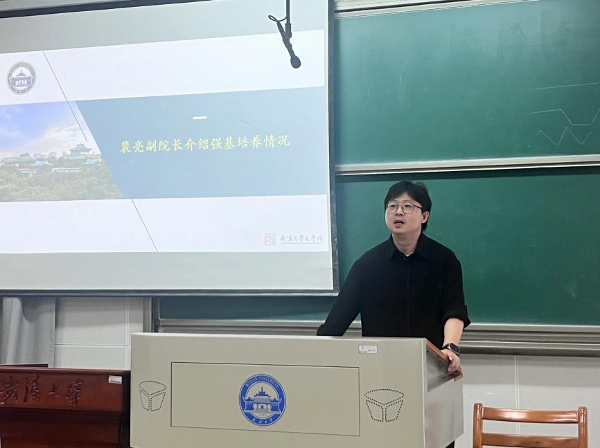 裴亮副院长首先肯定了强基班一直以来的优良向学氛围和同学们昂扬的精神面貌,并代表学院热烈欢迎2024级的15名新成员,希望他们能够尽快融入强基班的大集体,真正获得专业归属感。针对现行培养方案的课程体系和学制模式,他指出,强基计划(古文字学方向)依托的学科实力非常雄厚,同时配备了精良的教师团队,提供小班教学和一对一指导,这样的学科平台和师资力量有助于密切交流学习方法,灵活组织研学实践,充分夯实学业基础。