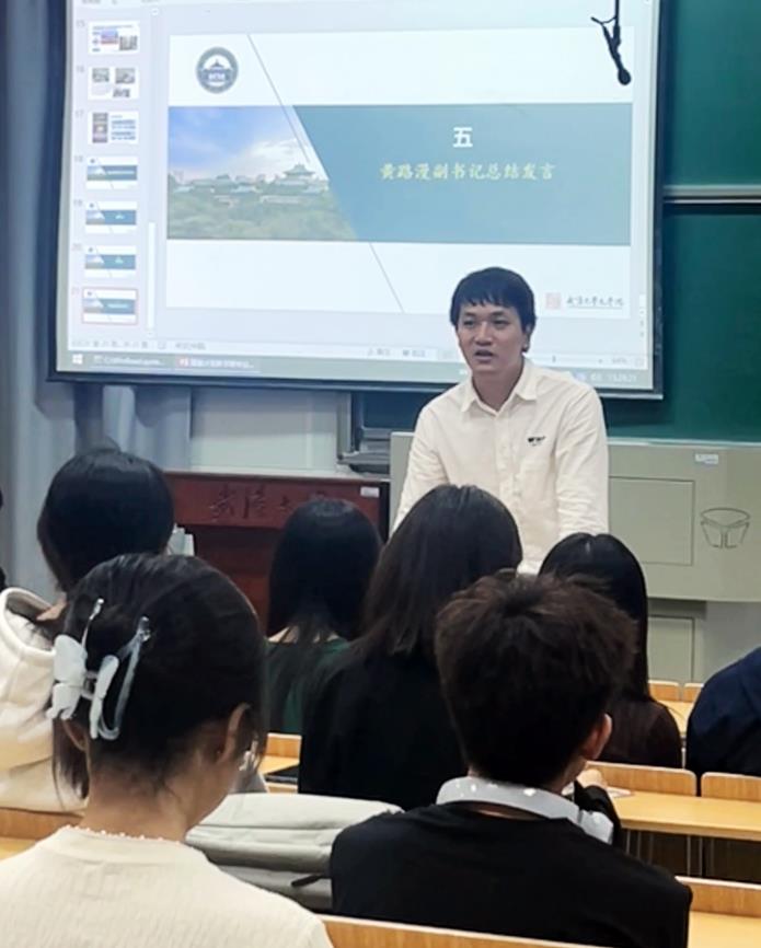 李寒光老师介绍了强基班学生在中国人民大学举办的第二届“树人杯”学术征文大赛、色小说 第二届强基计划交流展示会等赛事中取得的奖项名次,通报了上半年转段考核、分流考核、游学实践的具体情况。一方面,他对同学们的优异成绩表示由衷祝贺,期待未来更大的进步;另一方面,他切实分析了目前存在的一些问题,强调同学们既要养成良好的学习习惯,提升自己的学术科研能力,更要增强大局意识、集体观念,追求综合素质的全面发展。