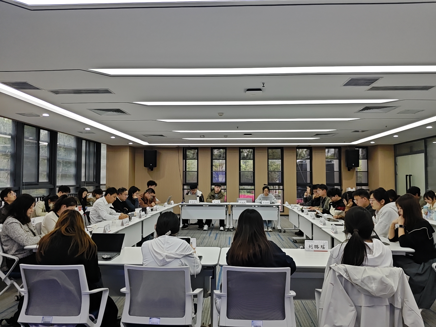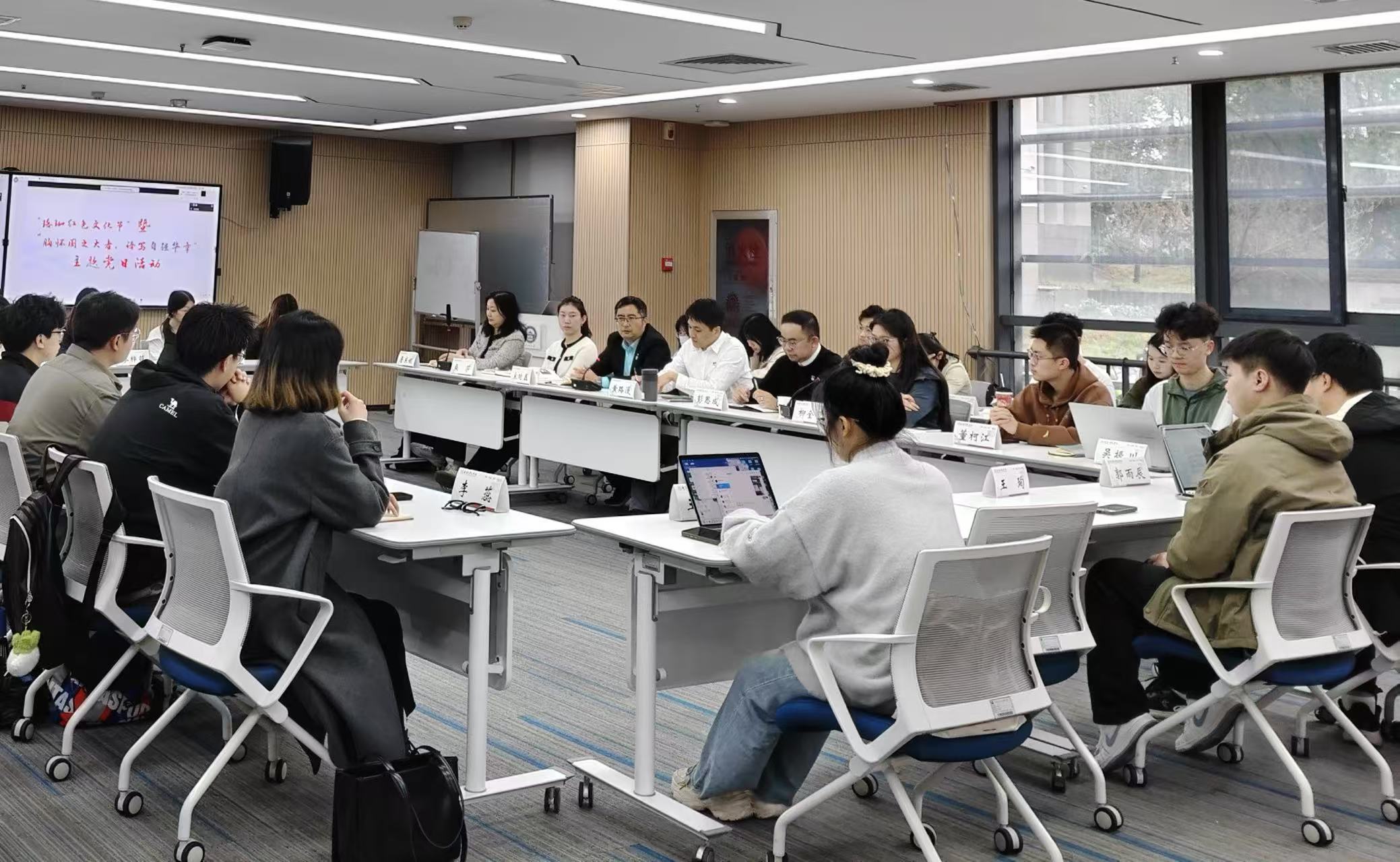 首先,柳金贝介绍了该红色文化节项目的前期开展情况。《经纬冰穹》采编团队代表刘亦橦、金凯歌同志分享了采编时的所闻所感;周韵韬、贺康欣同志分享了阅读《经纬冰穹》后的感受;《笔逐冰穹》话剧导演姜曾瑞同志则介绍了剧本创作和排演经验。遥感学院杨绍麒同志指出青年学子应注重跨学科知识的学习与运用。