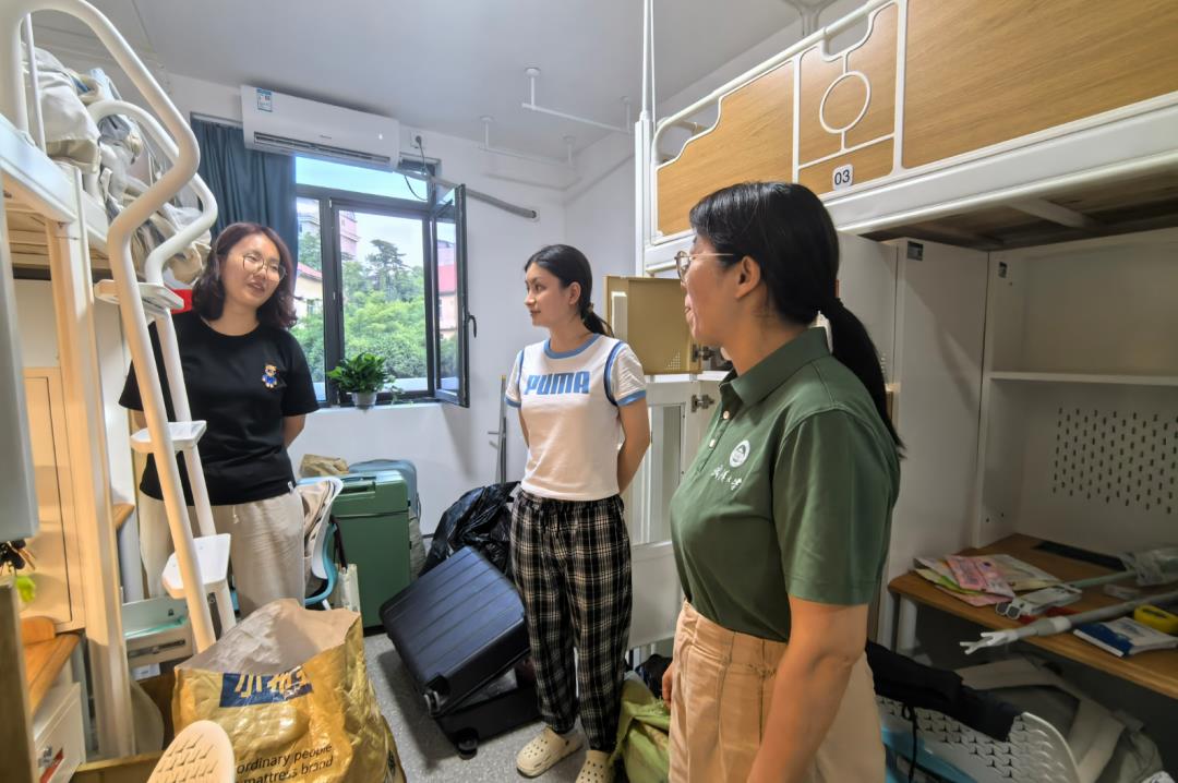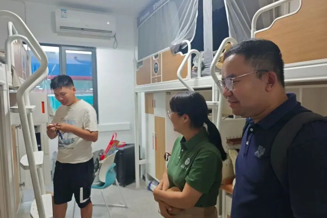 9月1日晚,色小说 党委副书记黄路漫、本科生辅导员丁宇梁、兼职辅导员柳金贝与全体班级助理深入本科新生寝室,关怀入住情况。9月2日,院党委副书记王若飞、研究生辅导员彭思成,兼职辅导员高子仪、魏雯珺和研究生会骨干来到珞珈山公寓,走访研究生新生宿舍。老师们关切询问新生适应情况,倾听他们初至珞珈的感受与困惑,并送上学院的诚挚欢迎与期许。