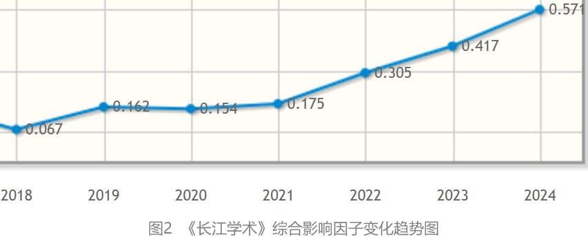 根据中国科学文献计量评价研究中心近日发布的《中国学术期刊影响因子年报》(2025年版),《长江学术》复合影响因子0.816,综合影响因子0.571,分别比上一年提升0.222、0.154。