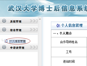 第三步:打开信息管理栏目——个人信息管理