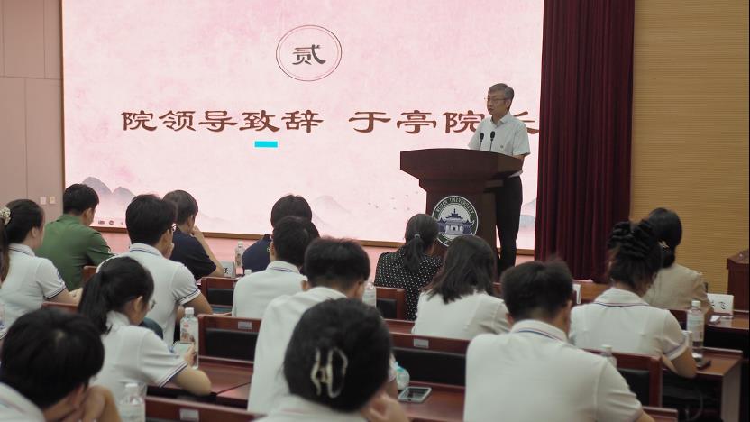 于亭院长在致辞中回顾了武汉大学文学院曾经俊彦云集的历史,追溯了前辈学者的优良传统,并鼓励各位新生继续探索和创新。他提出“文学”“文献”“语言”三者间具有相互渗透的关系,同学们在未来的学习生活中要有整全的学科视野。因此,于亭院长首先强调同学们要多读书、读好书,提醒同学们研究生阶段的学术阅读和本科阅读有很大区别。其次,他也希望同学们能够重视写作、勇敢写作,加强学术训练,把自己读书的心得体会记录、整合。最后,于亭院长以顾炎武和马克斯·韦伯的例子引导同学们思考自己的人生选择和规划。研究生面临的是对职业生涯的学业教育,在如今的时代,他希望同学们面对自己的选择时,能够成为一个担当起责任、最后面对所有结果也能说出自己再无旁顾的人。