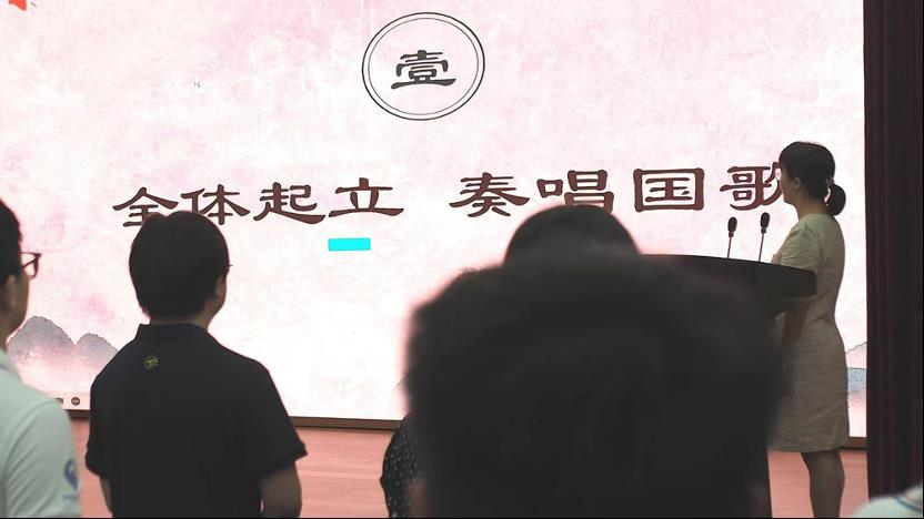 典礼之初,全体起立,现场奏唱中华人民共和国国歌,歌声回荡于会议室中。2024级新生在此感染下继续聆听于亭院长在开学典礼上倾情发表的致辞。