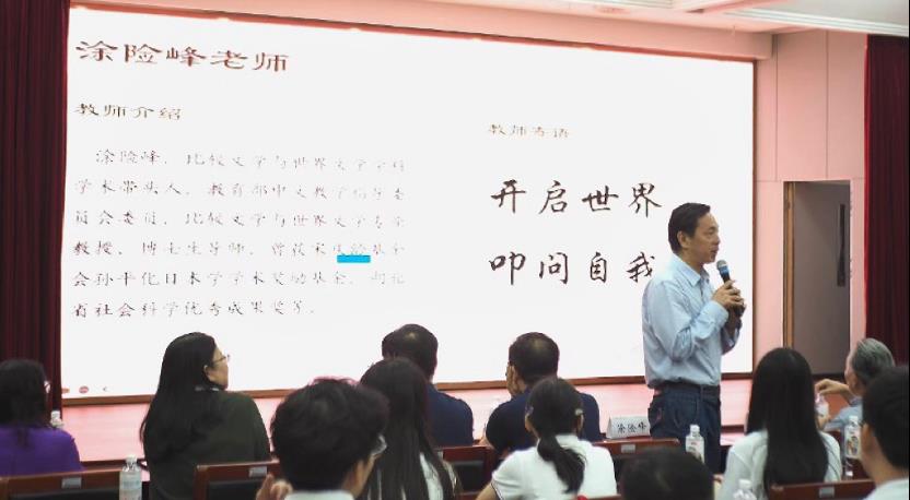涂险峰老师认为同学们要走向世界,“开启世界,叩问自我”,而不要封闭自我,要不断拓展外部世界,“叩问自我”也有对自我价值的发现。