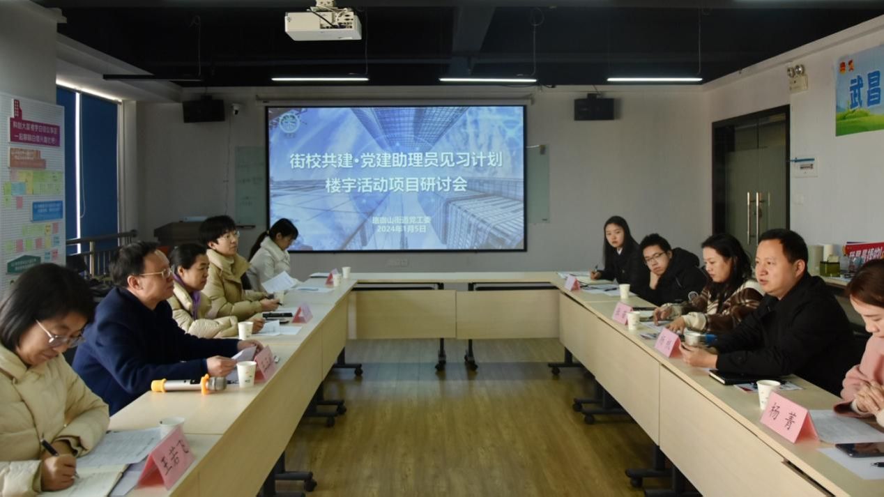 在科创大厦B座的白领兴趣社,师生们和珞珈山街道党工委就校地合作共建及“党建助理员见习计划”进行了座谈交流。党工委书记杨帆表示,基层是同学们接近社会、了解社会的窗口,基层急需高水平治理人才和智力支持,希望大家积极参与并提宝贵意见。党工委副书记杨菁介绍,综合文学院特色和学生需求,初步拟定了白领科学社、珞珈先锋直播间运营、文学讲坛、剧本创作、文创产品设计与社区志愿服务等六大合作项目。珞珈山街道党建办主任张苗为师生们分享了“党建助理员”计划及具体实施情况。