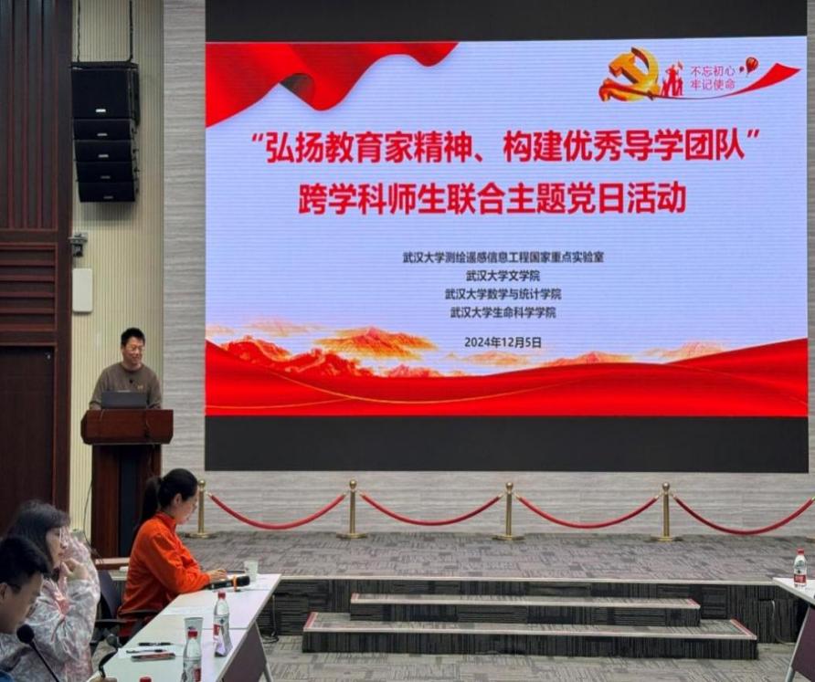 12月5日下午,“弘扬教育家精神 构建优秀导学团队”跨学科师生党支部共建活动在信息学部星湖实验大楼举行,文学院古籍整理和汉语言文字学教师党支部、2023级博士党支部、2022级硕士第三党支部、本科生第二党支部党员代表联合数学与统计学院学生党支部、生命科学学院研究生党支部开展共建,活动得到测绘遥感信息工程国家重点实验室大力支持,重点实验室、数学与统计学院部分领导、老师参与此次活动。