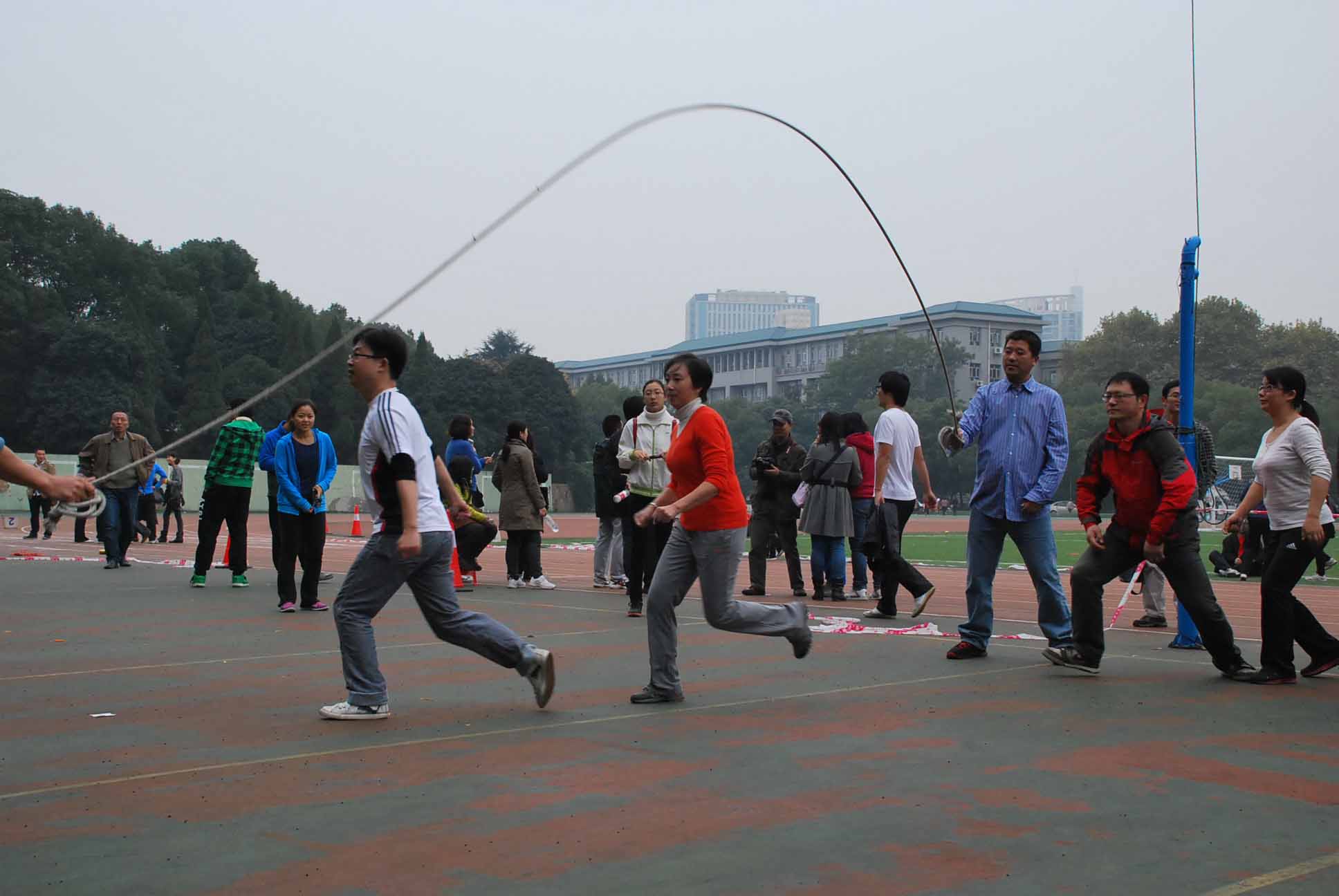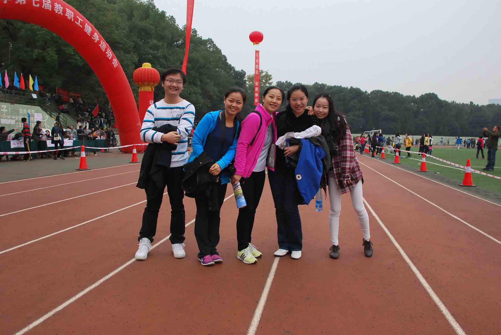 清风飒雨,珞珈枫红,2014年11月7日,武汉大学第七届教职工健身运动会在桂园操场鸣哨竞逐。我院选派了院党委副书记、工会主席王三礼为领队,工会委员余艺为教练的运动员队伍参加了本届运动会。