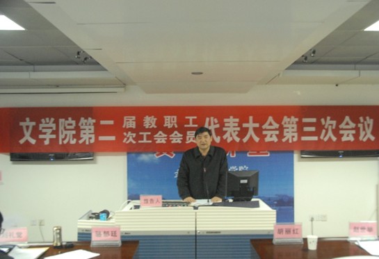赵世举院长在主题为“聚焦学科,全面发展”的《学院工作报告》中总结了2011年文学院在人才培养、学科建设、科研工作、国际交流、行政工作、社会服务等各方面取得的长足进步。赵院长还就2012年工作进行了展望:学院将借学科评估之机,以评促建,着眼持续发展;切实抓好学科评估工作,为申报国家一级学科重点学科做好准备;以学科建设为龙头,推进学院各项工作的全面发展。