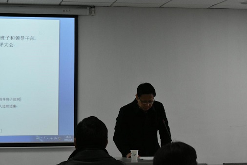 涂院长首先传达了学校考核工作的通知,接着黄佐斌书记代表学院领导班子进行了述职,随后8位院领导依次进行了述职述廉。