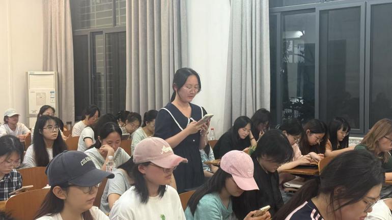 武婷婷学姐以"中国之治与中国之智"为题,解读藏在2025全国两会里的文化密码。宣讲从“思大局,观大势,谋大事”的文化基因出发,通过分析经济增速、民营企业发展等鲜活案例,凸显"人心齐、底气足"的制度优势。展望未来,她鼓励在场的党员同志要读知识之文本、读时代之大文本,成就大事业。整场宣讲既深挖中华文化的思想精髓,又展现了新时代全过程人民民主的蓬勃生机,为青年党员理解两会精神提供了独特的文化视角。